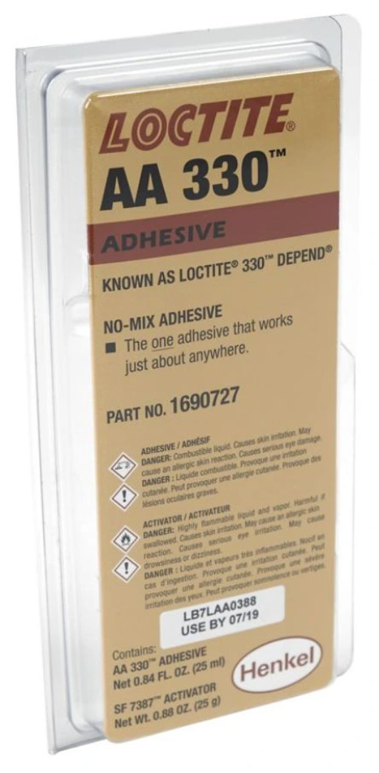 This universal Range Cooking Adhesive includes 1 LOCTITE® AA 330 adhesive tube and 1 LOCTITE® SF 7387 activator tube. LOCTITE® AA 330 is a no-mix, pale-yellow, general purpose structural bonder which is ideal for bonding dissimilar substrates like PVC, phenolic and acrylic compounds.Read More